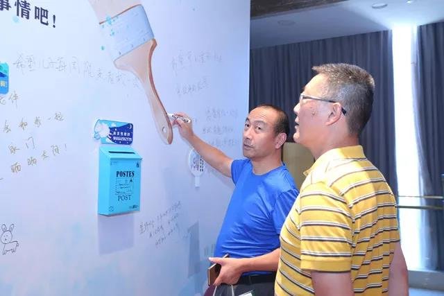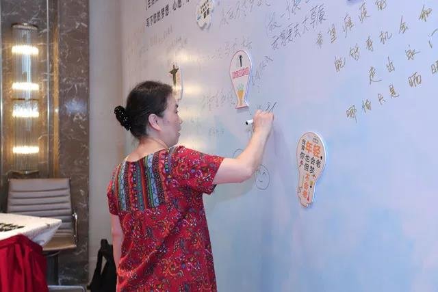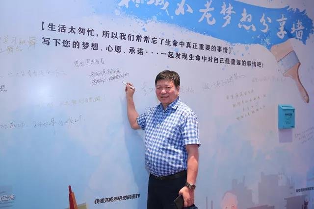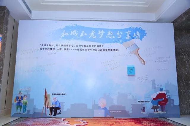 来宾入场后在“不老墙”上写下自己的“不老梦想”